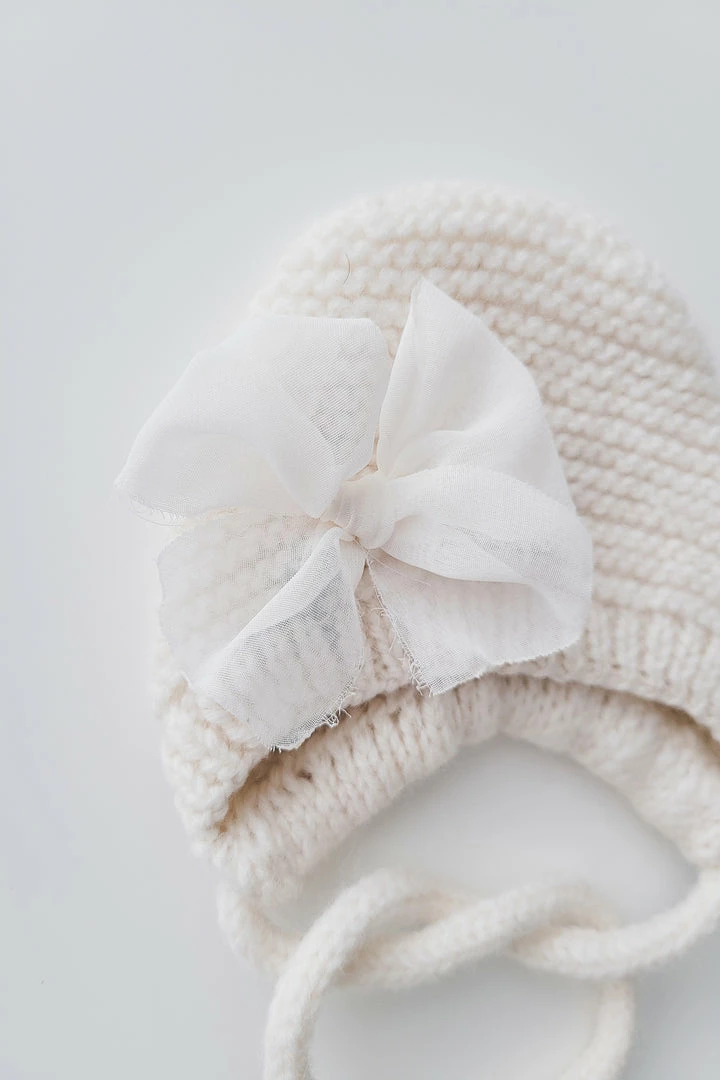 LoveShackFancy Little Girls Bebe Theory Knit Ivory Bonnet