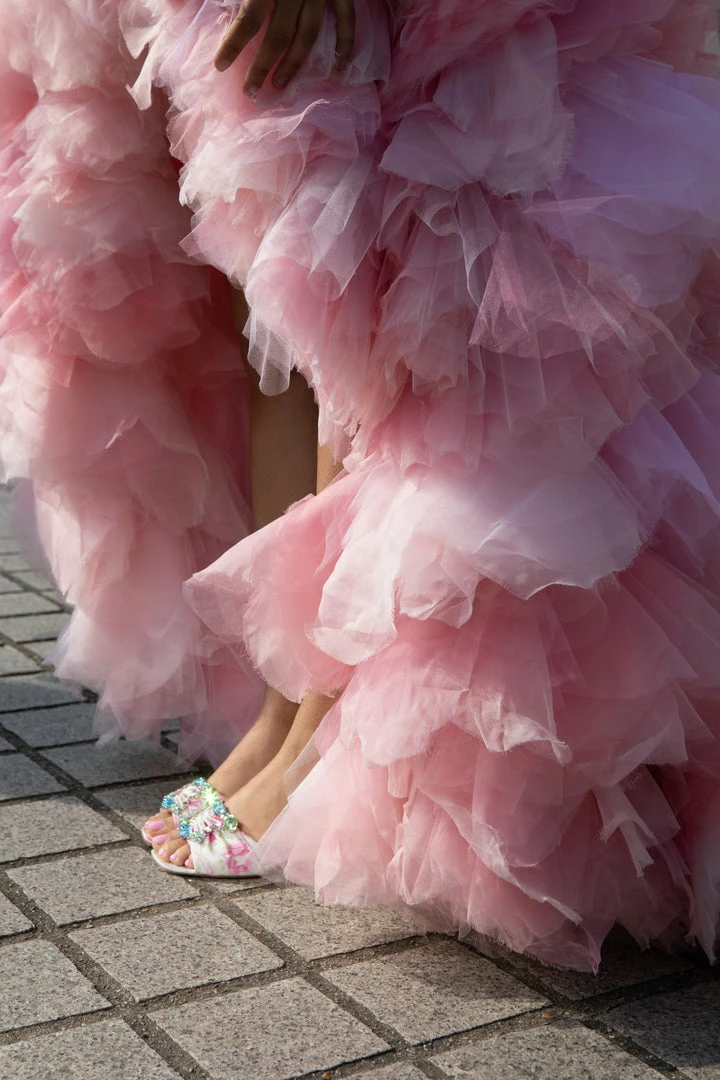 LoveShackFancy x Sophia Webster collection is here! We’re having a mule moment. This major mule from Sophia Webster gets a LoveShackFancy touch with our pretty in pink, classic rosebud print finished with a delicate ruched and a pastel rainbow butterfly shape buckle. Shown here in Antique Rosebud.