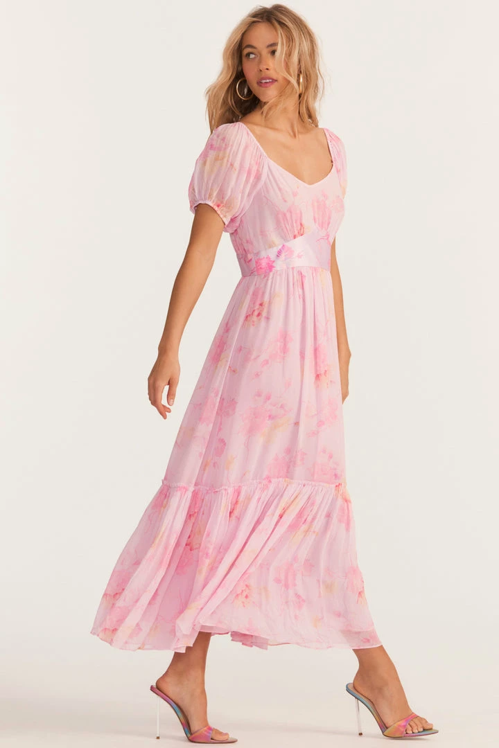 This season, our fan-favorite Angie dress is updated in viscose with a vibrant, bayside rosebud print. This vintage silhouette has a shirred bust and pert puffed sleeves with slits. The full skirt features a single shirred seam above an elongated flounce. Accessorize it with our Heart Beaded Handbag. Shown here in Summer Morning.