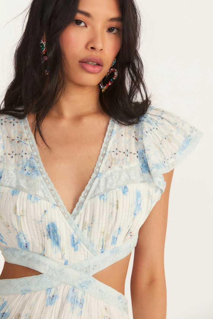 The Audrina Dress is a new, updated Victorian silhouette perfect for the summer season in 100% cotton with our hero print, rowboat print mix. This mini dress features flirty cutouts at the waist, schiffli embroidery, custom lace detailing throughout and elastic at the rear. Pair your mini dress with our Karelia Bag.