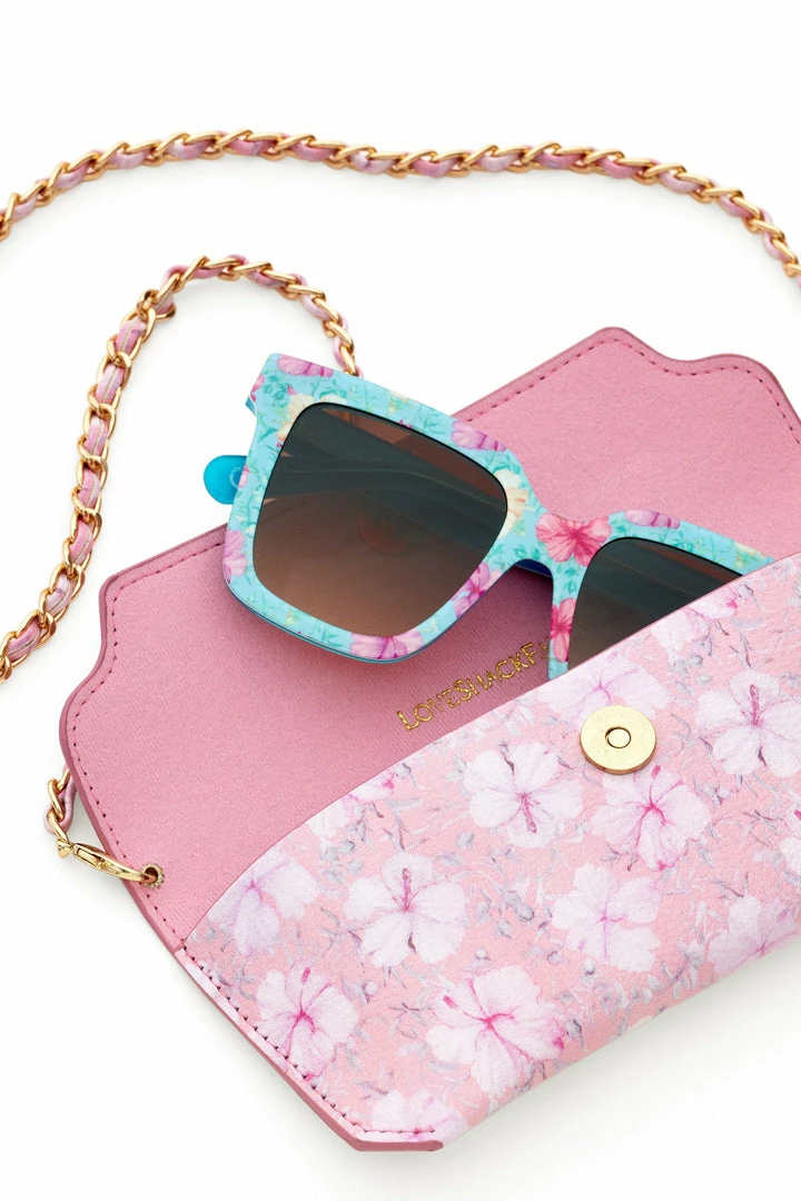 Stay vacation ready in our Novella sunglasses. With epic, square frames these shades make waves with a tropical floral print amongst a turquoise base. Wear them with our Girls Nami Dress.