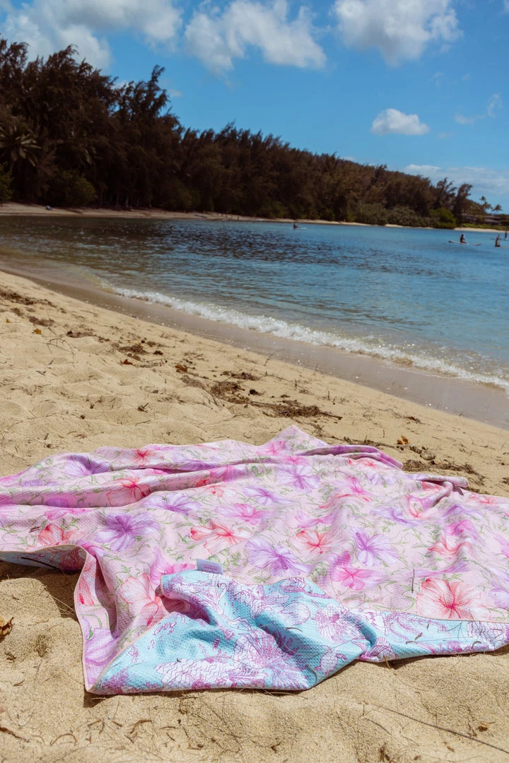 Dry off and lay out with the LoveShackFancy x Hurley Under The Sea Rectangle Towel. This two-sided towel features a playful aqua-colored mermaid print on one side and a bright pink and purple hibiscus print on the opposite. Pair your towel with our LoveShackFancy x Hurley One Piece Swimsuit.