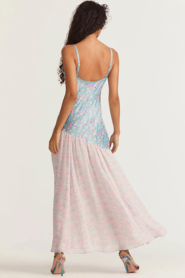 Strutting through the season in our new Rhoda Dress. This major maxi is adorned with intricate paneling detail in custom, sheer lace lining the frock and the trim. Channeling all the summertime feels in a technicolor neon, colorblock daisy print. This dress features adjustable straps. Accessorize it with our LSF x Lova Dolce Vita Heart Flower Earring. Shown here in Fuji Sunrise Print Mix.