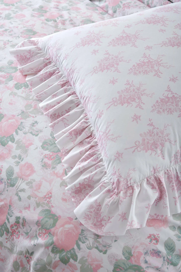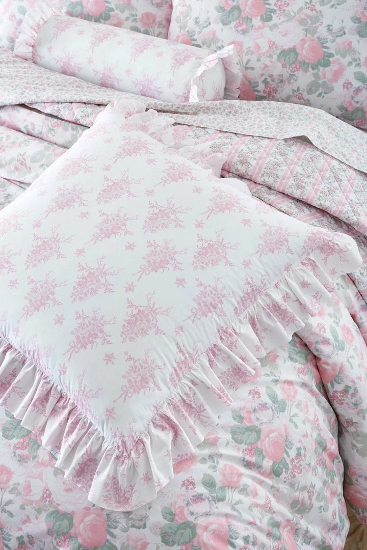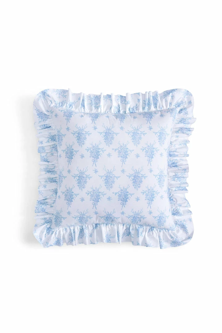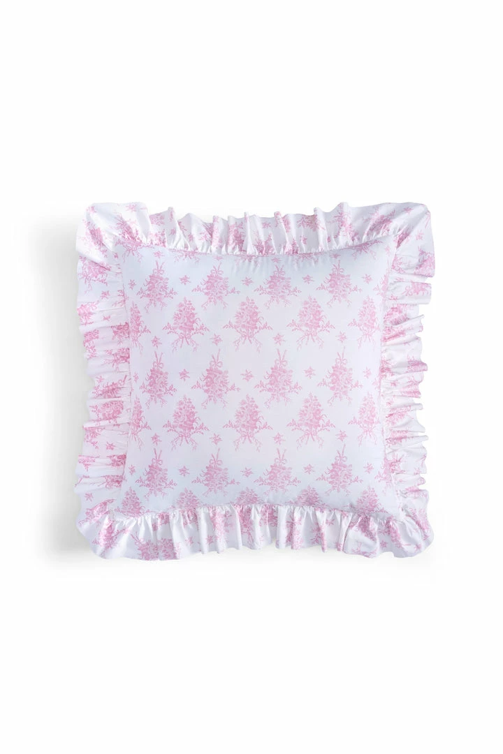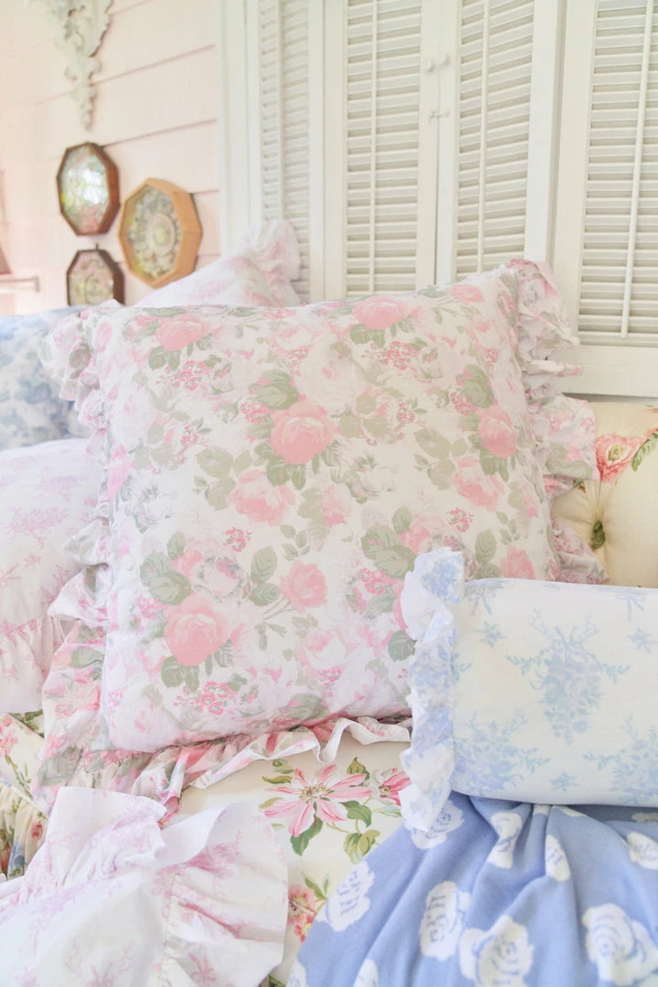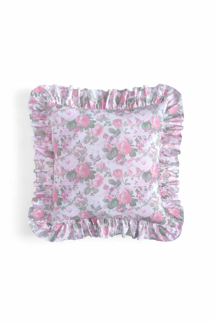 Sweeten up your space with our cozy accent piece. This classic cotton pillow, showcasing our signature prints, adds a timeless touch to any room. Featuring a vintage-inspired floral print and ruffles on the exterior, each pillow includes a removable insert and zipper closure for added convenience. Mix and match with our Palm Beach Rose Duvet Cover and Sham Set. Measures 26 x 26″.